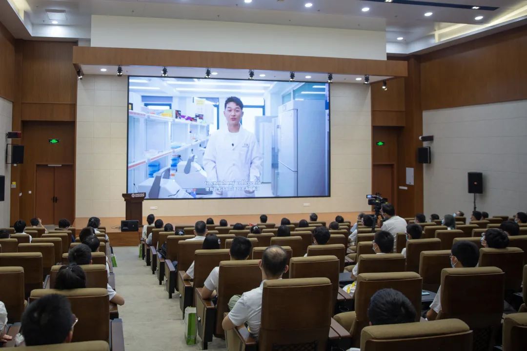 中国科学院院士、上海交通大学原副校长陈国强院士在线上与全体师生见面,向新生致以由衷的祝贺。陈院士表示,非常荣幸作为色色视频 顾问委员会一员,为学院发展尽绵薄之力,也非常高兴见证了学院两年以来的快速成长。他说,“这里是医学教育改革的‘新高地’、触及顶尖科学知识的新前沿”,同学们要“怀揣一颗医者仁心、一个奋斗之志、一股创新活力,去探索生命科学的无穷奥秘,去捍卫人民群众的生命健康”。