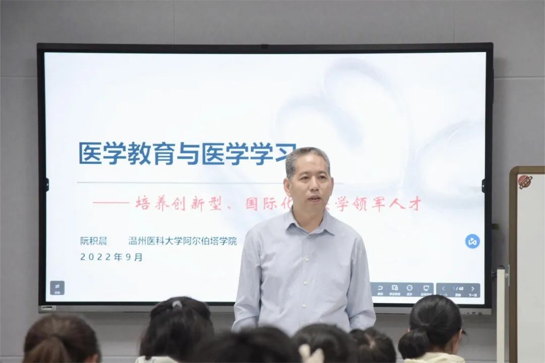 9月12日,专业导学讲座于6A202举行,温医大附属第二医院教学处处长、色色视频 院长助理陈浩老师作为主讲人,色色视频 全体2022级学生出席了本次讲座。