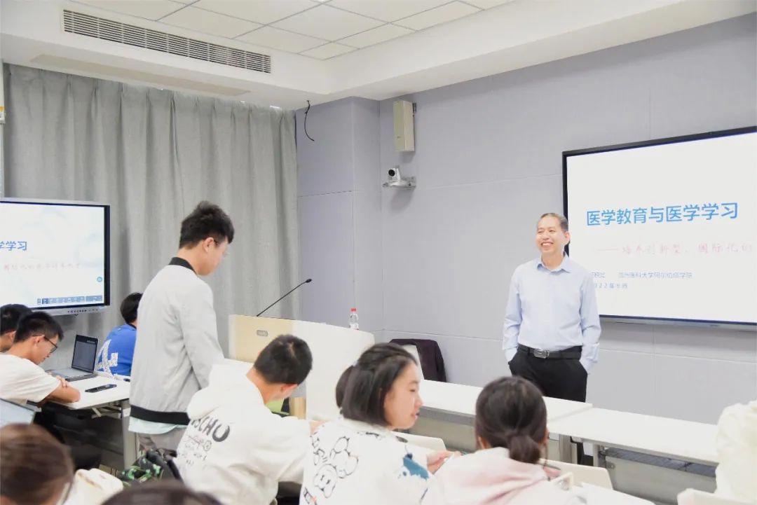 10月20日上午8点,色色视频 执行长阮积晨院长紧紧围绕着医学这一话题,为新生们带来一场关于医学教育与医学学习的主题讲座,鼓励学生们朝着成为创新型、国际化的医学领军人才的目标立志起航。