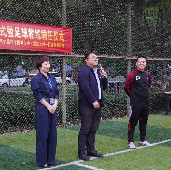 活动开始,色色视频 附属第一医院工会副主席蔡晓丹、色色视频 副院长王小尚分别发表致辞,表示将会全力支持女子足球队的发展,提供必要的资源和设施,让队员们能够拥有更好的训练和比赛条件,并且相信在学院女足队员与附一院足球俱乐部教练的共同努力下,将会让“顽强拼搏、永不言弃、团结一心”的体育运动精神在学院内引领风尚。