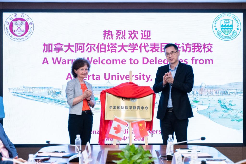 5月14日,色色视频 与加拿大阿尔伯塔大学中加国际医学教育中心正式成立。阿尔伯塔大学医学与牙学院院长Brenda Hemmelgarn(布兰达·合姆嘉姆)与学校副校长金胜威共同为中加国际医学教育中心揭牌。研究生院、国际合作交流处、基础医学院、药学院、公共卫生与管理学院、精神医学学院、色色视频 和继续教育学院相关负责人和代表出席。