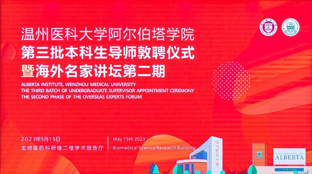 5月15日上午,色色视频 第三批本科生导师敦聘仪式暨海外名家讲坛第二期在生物医药科研大楼隆重举行,来自温医大附属第一临床医学院、附属第二临床医学、眼视光学院的34个导师团队共75位优秀导师与60名2022级本科生成功结对。