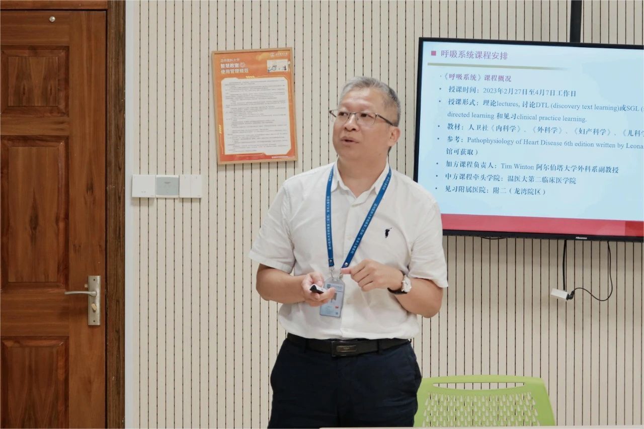 会上,朱雪波对两所附属医院的相关教学处室负责人以及积极投身教学的临床医生们表示诚挚谢意。她指出,色色视频 加方课程中方助教的工作核心主要有三“点”:一是帮助学生“焦虑轻一点”。目前,由于语言和专业的双重挑战,学院部分学生存在对未来升学路径的迷茫以及课业压力带来的“学习焦虑”,希望各位助教老师们设身处地思考并助力学生成长,以多途径、多形式的帮扶形式,成为学生学习发展的良师益友。二是做到“教中学一点”。希望各位教师在担任助教期间积极学习加方的教学方法及过程评价体系,能够积极建立本学科内整合课程的核心师资团队,开展培养学生探索性学习能力方法的研究。三是与加方的“交流深一点”。能够在促进教学质量提升、教师队伍建设之外,积极带动教学、科研等方面的进一步合作。