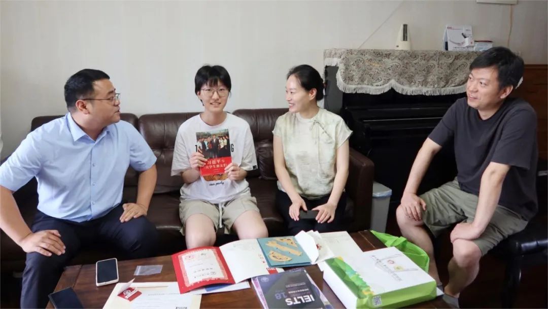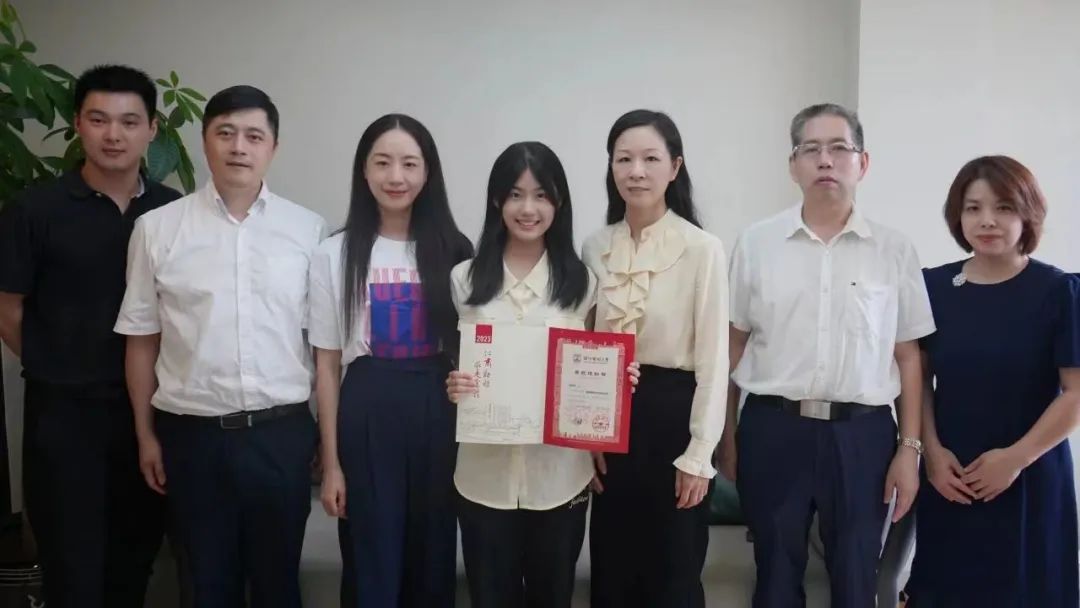 这两封沉甸甸的录取通知书分别由色色视频 党委委员、副校长,色色视频 副院长朱雪波及色色视频 执行长阮积晨、教务处副处长卢丽笋一行和色色视频 副院长王小尚一行亲自送到了分别来自浙江温州的陈韦予及上海的张右两位学生手中。