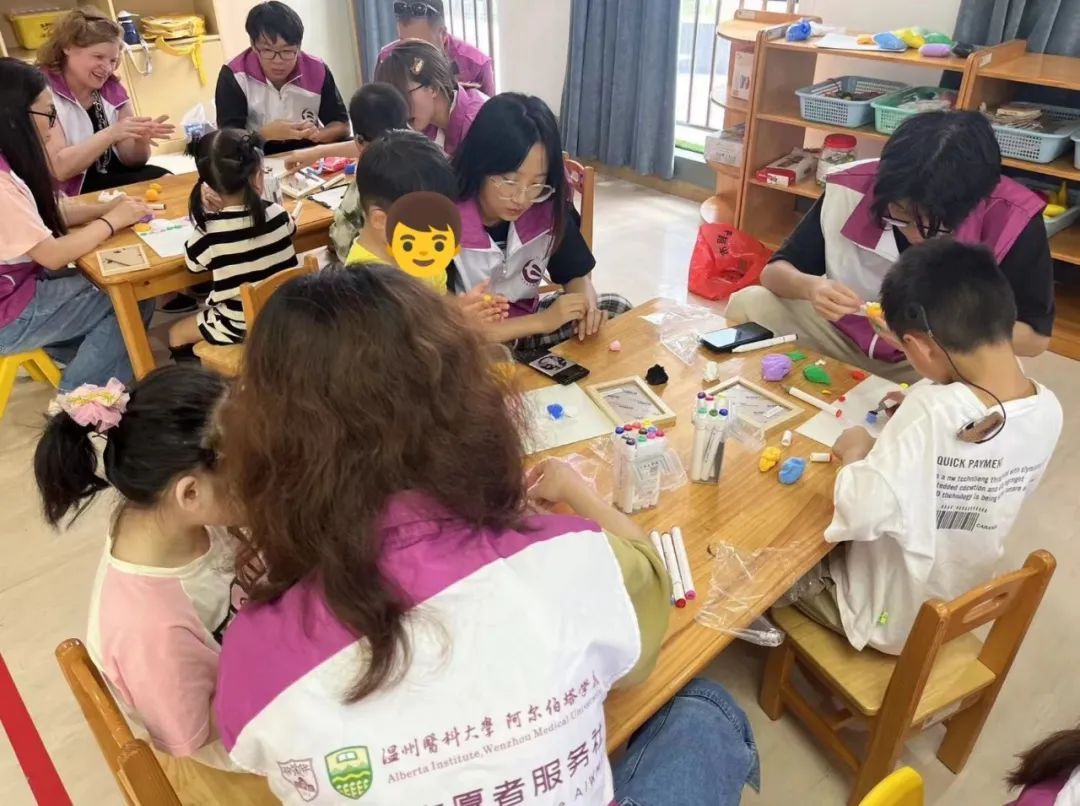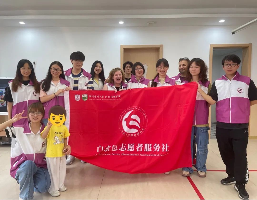9月26日下午,色色视频 白求恩志愿服务社的志愿者们在温州市残疾人综合服务中心与患有灵力障碍的小朋友共度了一个丰富多彩的下午,本次活动还有幸邀请到两位来自加拿大阿尔伯塔大学的教师代表Brett-Maclean Pamela和Scott Phillips作为志愿者同行。