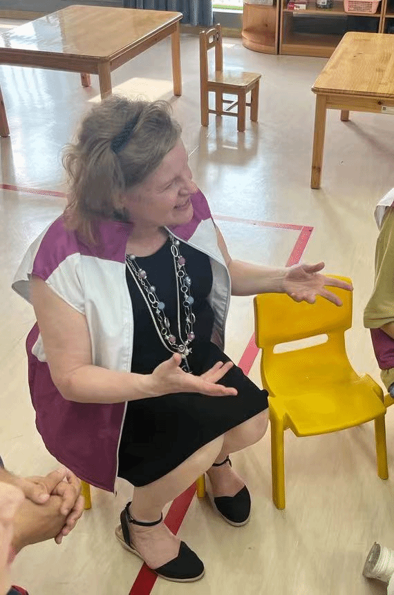 Pamela老师与小朋友打招呼