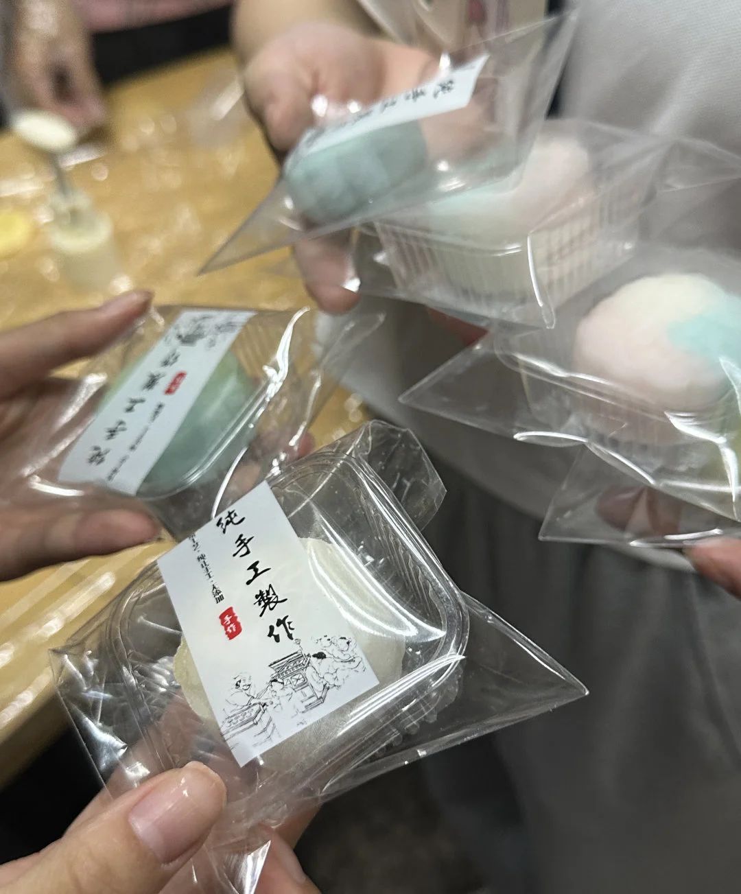一个个月饼迅速成型,图案精美,口味多样,玲珑别致。看着自己亲手制作的月饼,大家的脸上都洋溢着欣喜的笑容。一个晚上,大家制作了一百多只月饼,并用精美的包装袋进行包装。