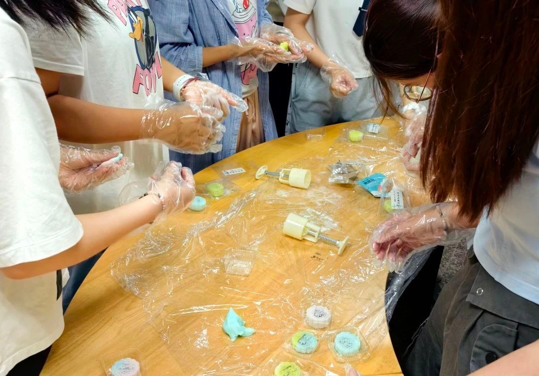 为了给同学们更好的活动体验,生活部的成员们也十分用心,事先进行试做,在尝试中掌掌握月饼的制作流程与材料配比,并提前将月饼制作的小妙招,帮助同学们快速上手,能够亲手制作更多色香味俱佳的月饼送给亲朋好友。