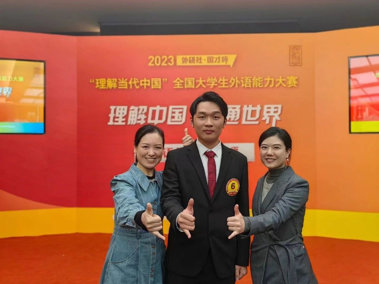 12月4日,2023“外研社·国才杯”“理解当代中国”全国大学生外语能力大赛(英语组)国赛演讲赛项第二阶段在北京举办,150名选手立足中国国情、放眼全球发展,理解中国之路、阐明中国之理、传递中国之声。经过激烈比拼,10位选手成功晋级第三阶段比赛。色色视频 2021级学生王浩天就是其中之一!