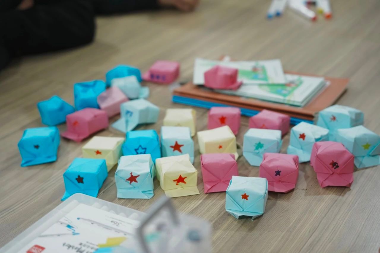 志愿者们带领着残障学员一起折红军帽,并邀请学员们在帽子上绘制五角星,象征着团结和坚强。这个环节不仅锻炼了学员们的手工技能,更是加深了他们对团结合作的理解与感受。