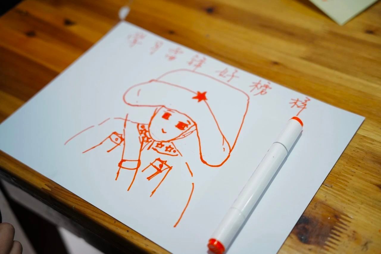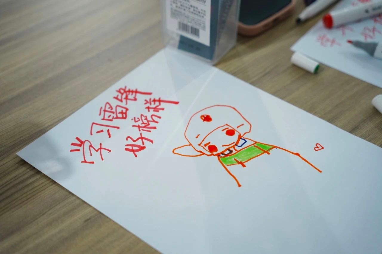 随后,他们共同创作了“我心目中的雷锋”的画作,期间不时穿插着讲解雷锋精神的感人故事。最后,志愿者们在纸张上书写了“学习雷锋,好榜样”、“向雷锋同志学习”、“学雷锋”的字样,以表达对雷锋精神的敬意和传承。