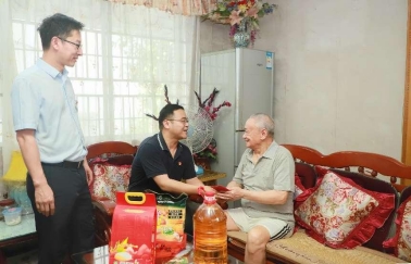 学院党委副书记王小尚、春秋社区书记朱曼看望慰问翁老