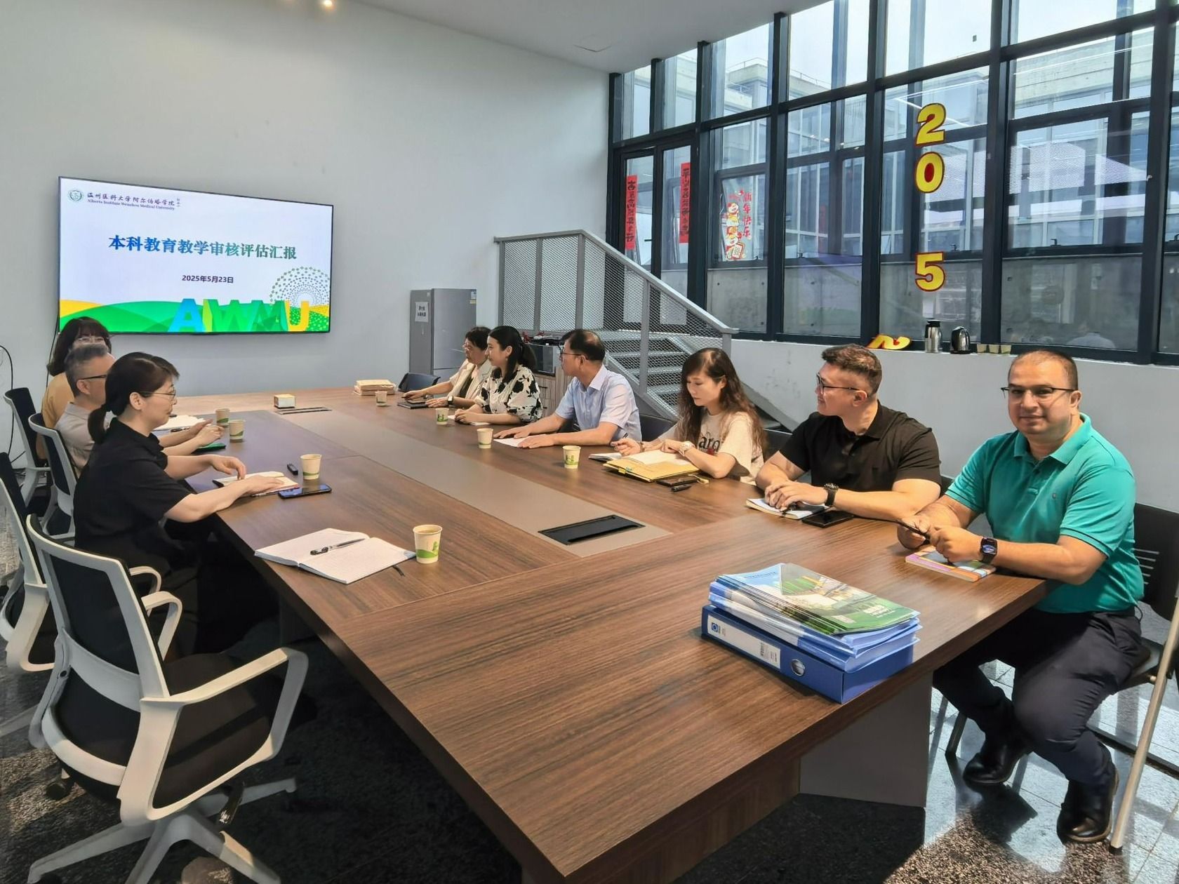 为扎实推进新一轮本科教育教学审核评估工作,5月23日上午,国际教育学院院长蔡跃飘、副院长林歌吟及教学办一行8人与色色视频 开展学院互评互查工作。色色视频 副院长朱雪琼、督导专家及教学办相关人员参会。