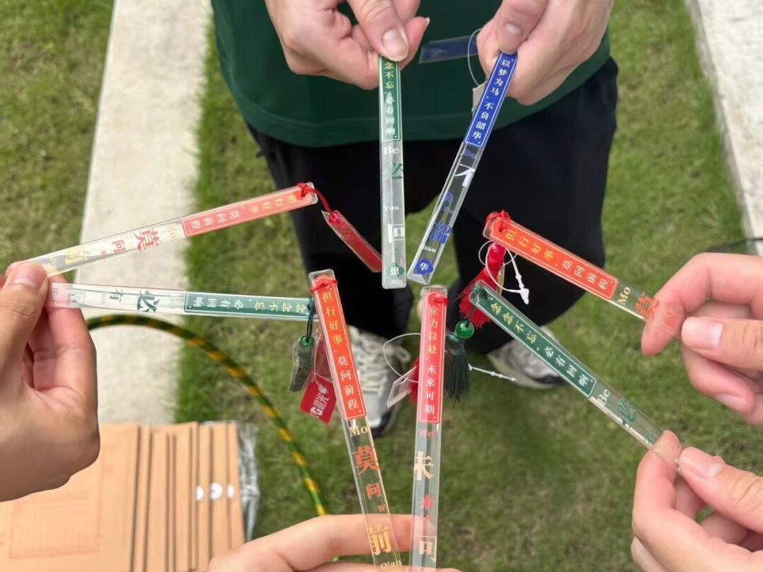 夕阳西下,学院标志牌前,同学们手持礼花,随着 “嘭” 的一声,金色碎屑如雨洒落。随后,学院为“技能比拼”与“趣味游戏”优胜者颁奖:一等奖团队获实用电脑包,二等奖获定制书签,三等奖获文具套装,这些奖品上印着的 “阿院印记” LOGO,不仅是荣誉的象征,更是学院赠予同学们的启程礼物,承载着满满的祝福与期望,陪伴他们踏上新的征程。