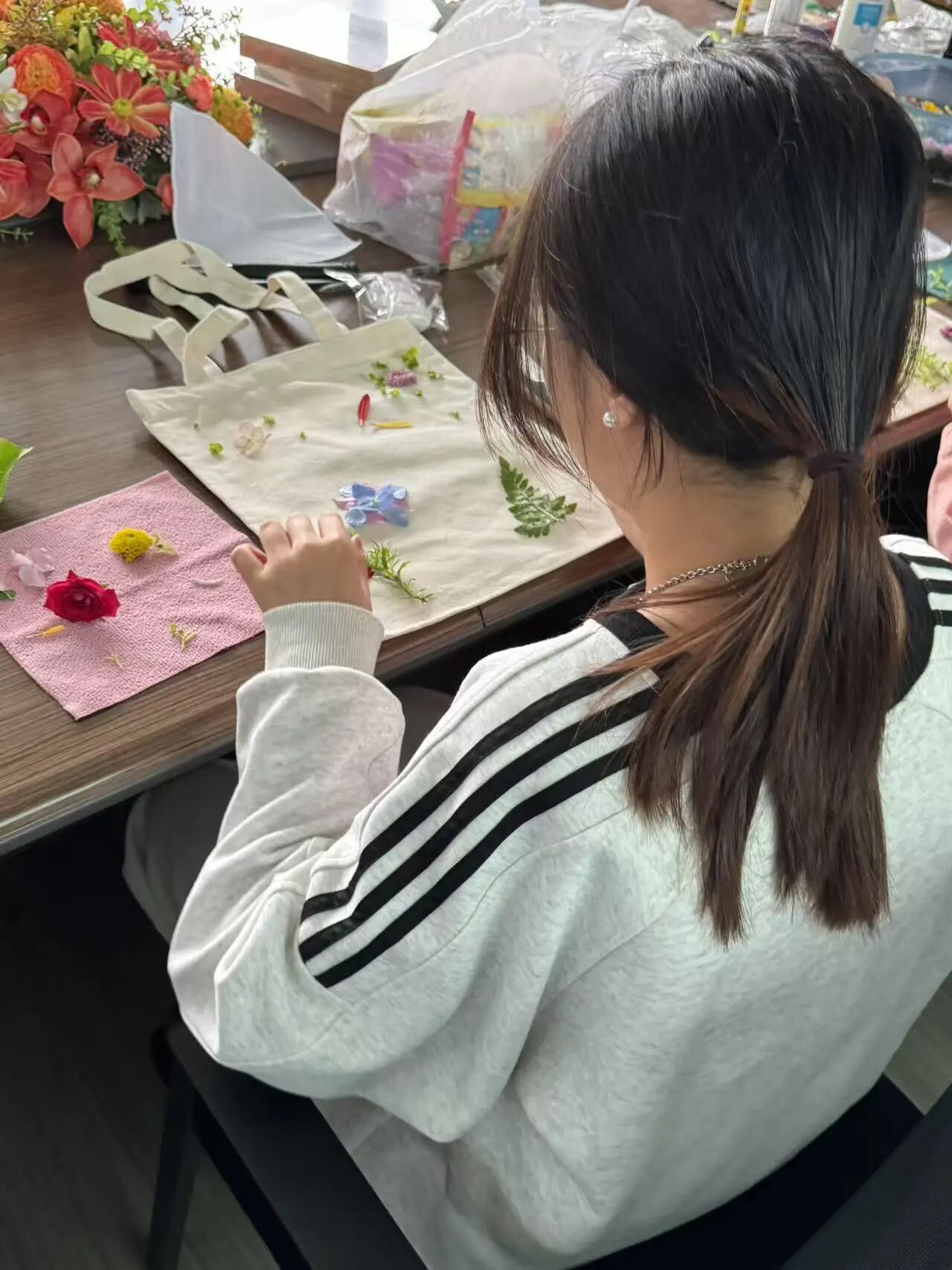 自然为师:现场提供数十种新鲜花叶,桉树叶的清新纹路、蕨类的羽状脉络,都是你的天然画笔。