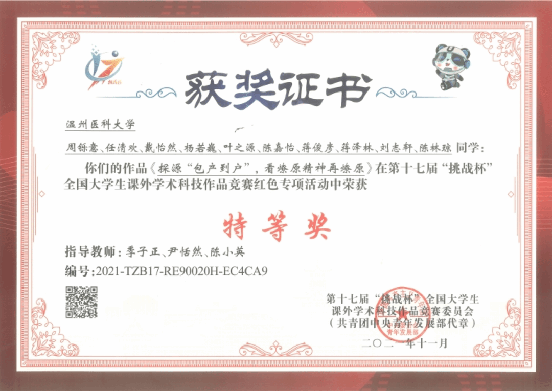 全班23人成功上岸,考研升学率83%。其中9人获得推免资格,2人出国深造,13人被上海交通大学、浙江大学等双一流高校录取,11人次获省政府奖学金,发表SCI论文11篇,总影响因子达40分,主持省国级课题8项,获得国家级专利4项,省级以上奖项8项,有8名正式党员,班级荣获校级先进班团集体标兵称号,班级3个寝室考研满堂红。