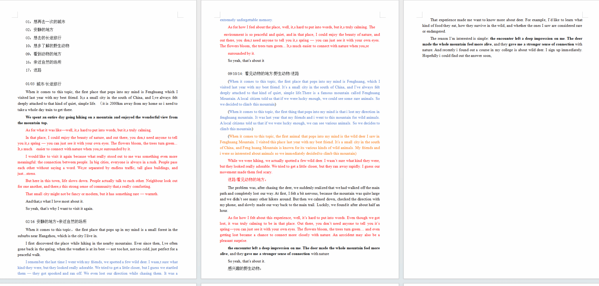 口语是我最有感触的部分。首先,需要提高表达欲。在考场上,要把考官当作一个朋友,主动分享,而不是被动回答。多说 = 少被追问(尤其Part 3)。其次,需要善用题库。做到题库内的题目指哪打哪,滚瓜烂熟!Part 1我不建议死背硬背,记住框架 + 自然表达就好。Part 2我采用“串题法”,建立自己的语料库,一个素材可以应对多个话题。前期准备越充分,后期考试越轻松应对。